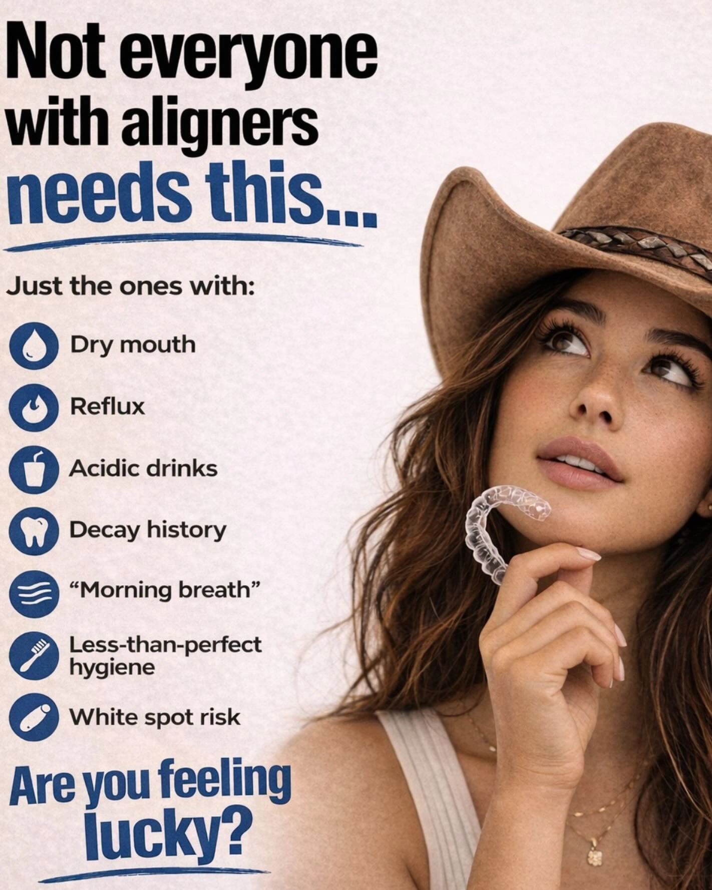 Clear aligners, retainers, night guards and sleep appliances create a small sealed space against enamel. Saliva flow is reduced, acids can accumulate, and the natural protective systems of the mouth may not work as effectively.